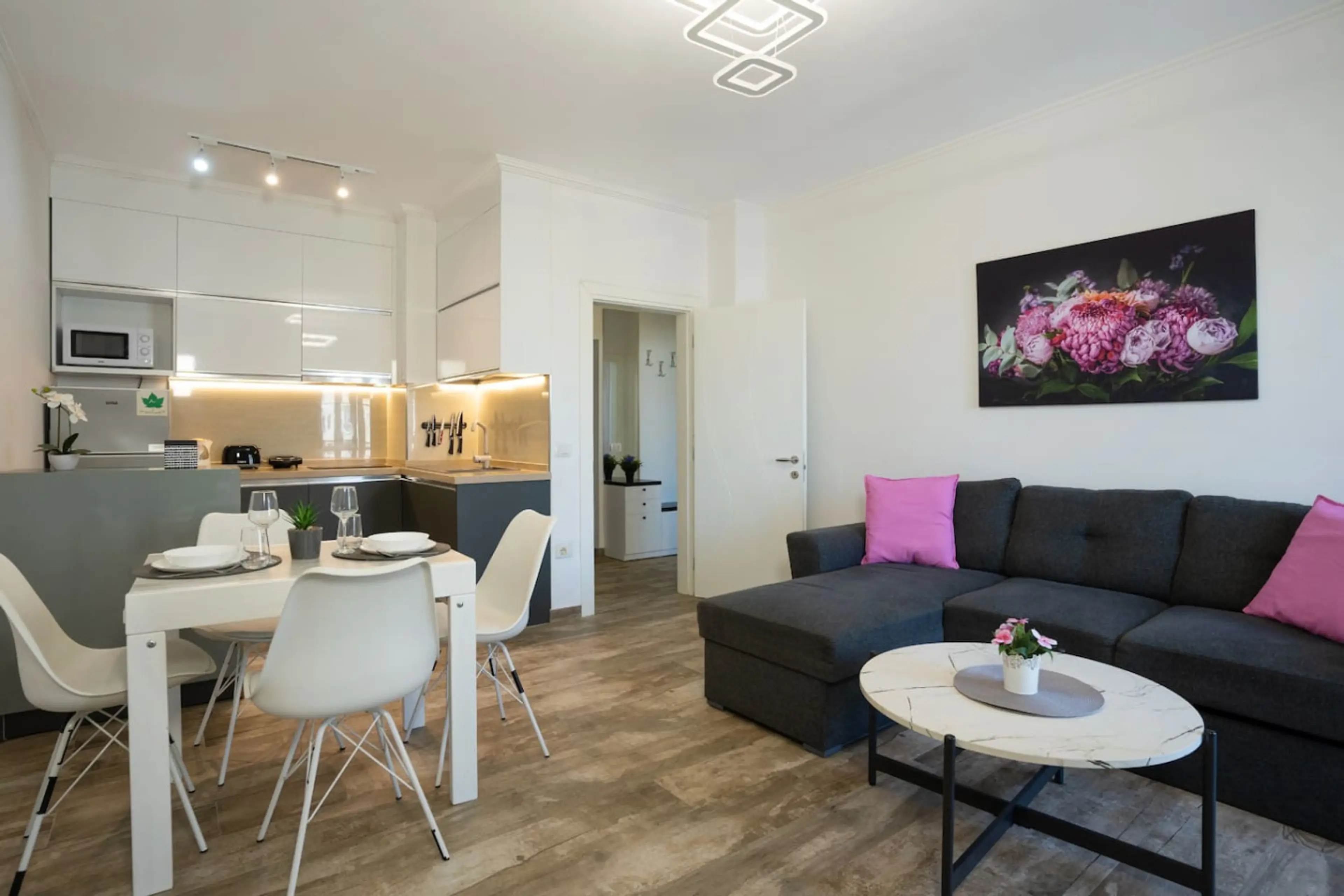 Experience coastal living in style in this elegant one bedroom apartment featuring a full sea view and a sophisticated gray and white interior. Perfect for couples or solo travelers, the space blends modern minimalism with comfort and natural beauty. The apartment spans 75 m² and features one bedr...