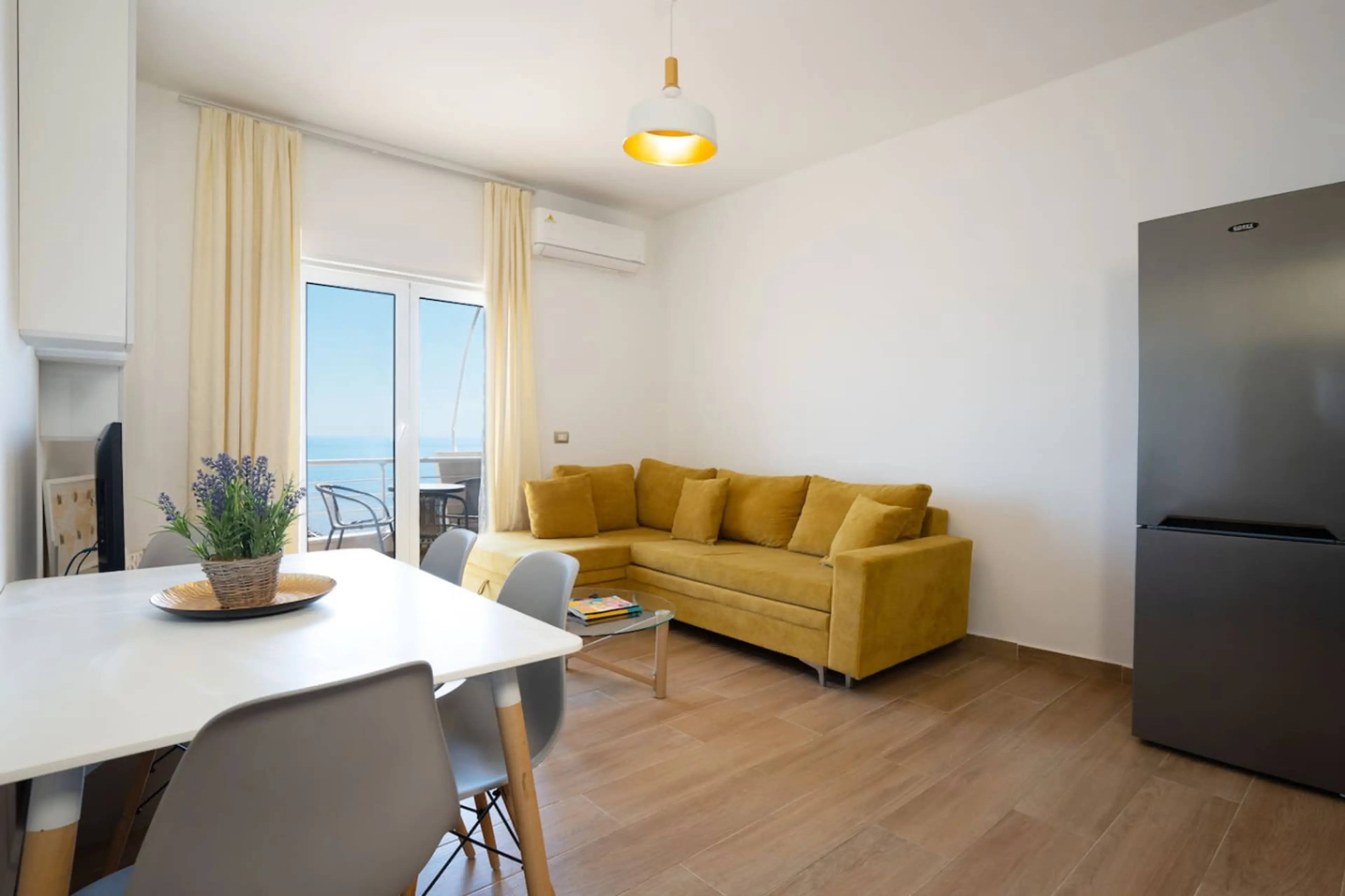 Experience coastal living in style in this elegant one bedroom apartment featuring a full sea view and a sophisticated black and white interior. Perfect for couples or solo travelers, the space blends modern minimalism with comfort and natural beauty. The apartment spans 62 m² and features one bedr...
